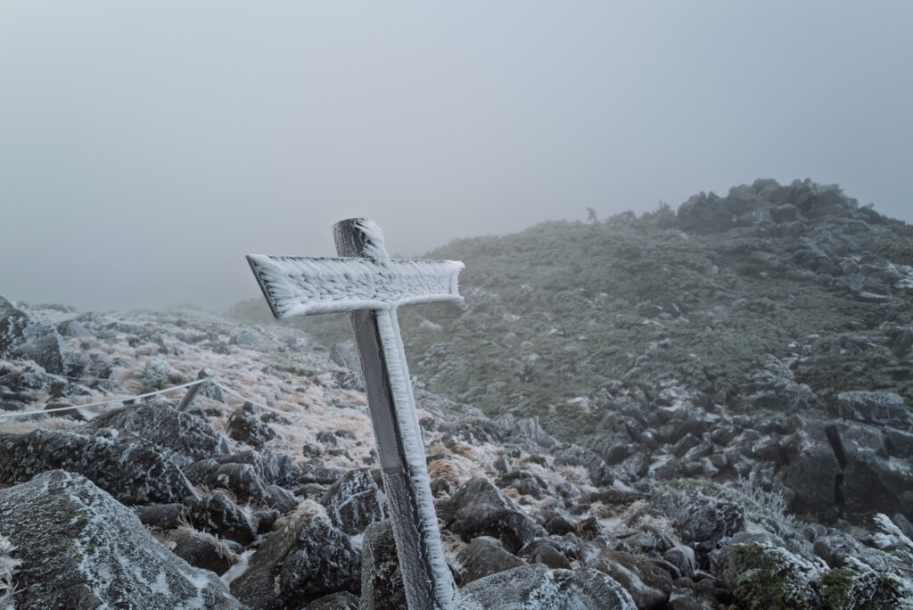 標識に何が書いてあるのか分からないほど、木も岩も凍り付いていました。